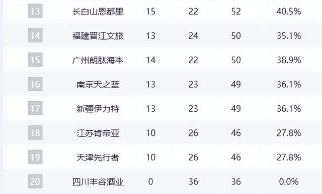 辽宁队这场关键卡位战失利后,战绩变为20胜17负,继续排在第九名,季后赛前景蒙上阴影,真是太憋屈了。宁波队位居第十,山西队以18胜18负的战绩排在第十一名,胜率达到五成,仍有机会冲击季后赛。北控队和吉林队同为15胜22负,分别位列第十二和十三名,处于季后赛边缘,每一场比赛都关乎他们的季后赛命运。福建队、广州队、同曦队排名十四到十六位,剩余几支球队则基本无缘季后赛。