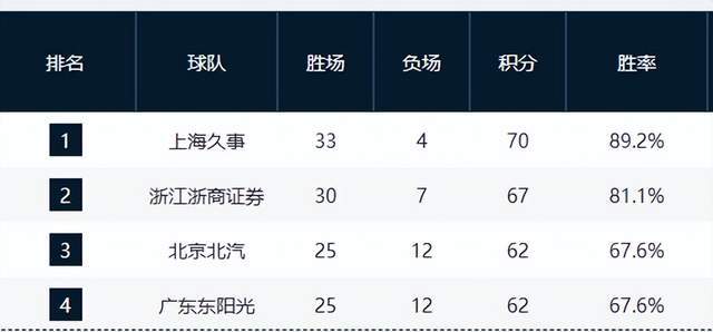 卫冕冠军广厦队近期状态回暖,在输给广东队后豪取三连胜,此役击败宁波队后,拿到赛季第30胜,以30胜7负的战绩位居积分榜次席。虽然冲击第一名难度较大,但身后球队难以对其构成威胁,基本锁定第二名位置,为季后赛争取了有利的排位。